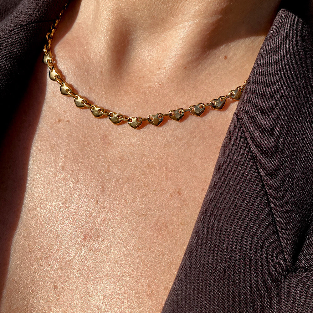 Collana girocollo cuoricini a piastrina. Lunghezza 40 cm + 5 di estensione.