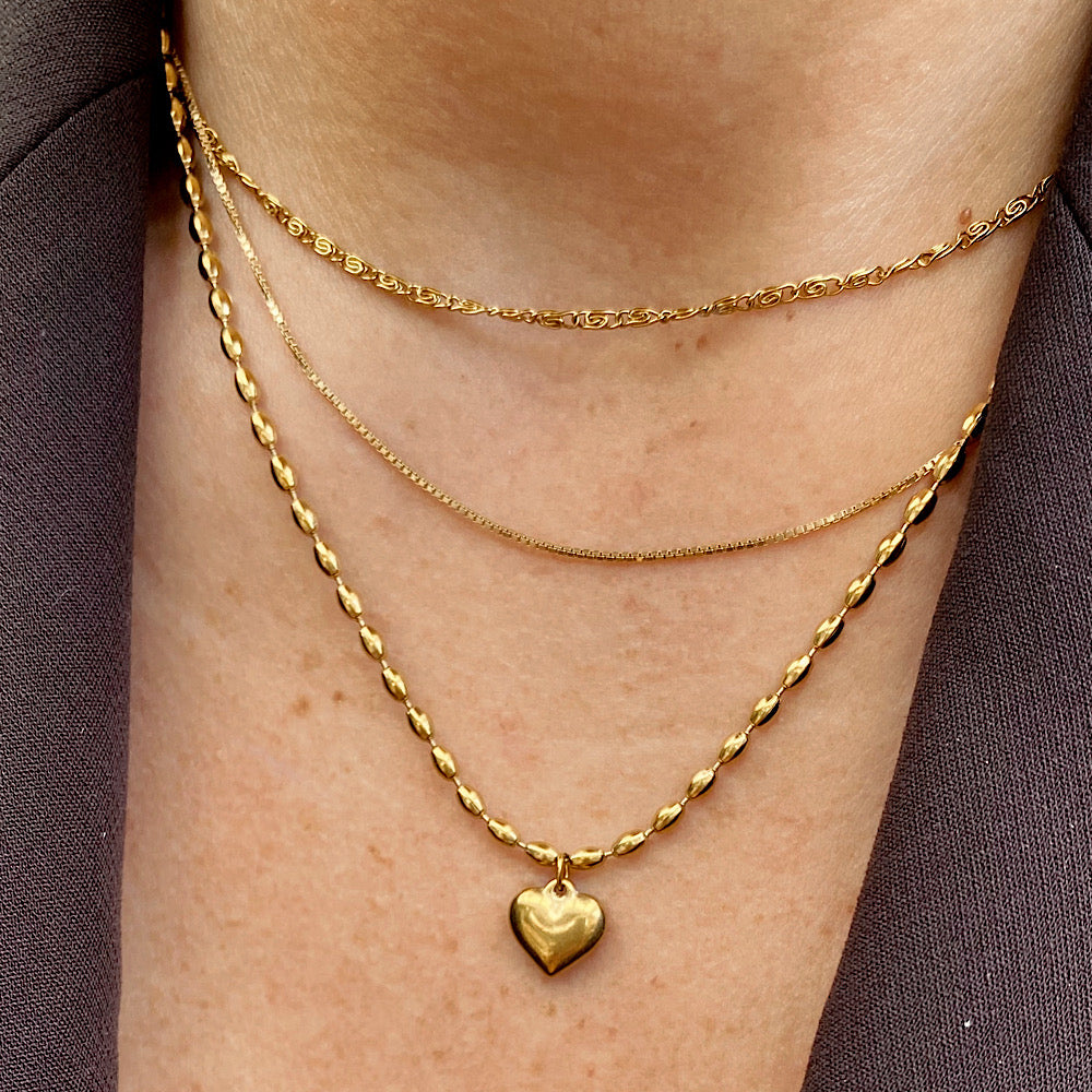 Catena maglia baguette. Ciondolo cuore bold.