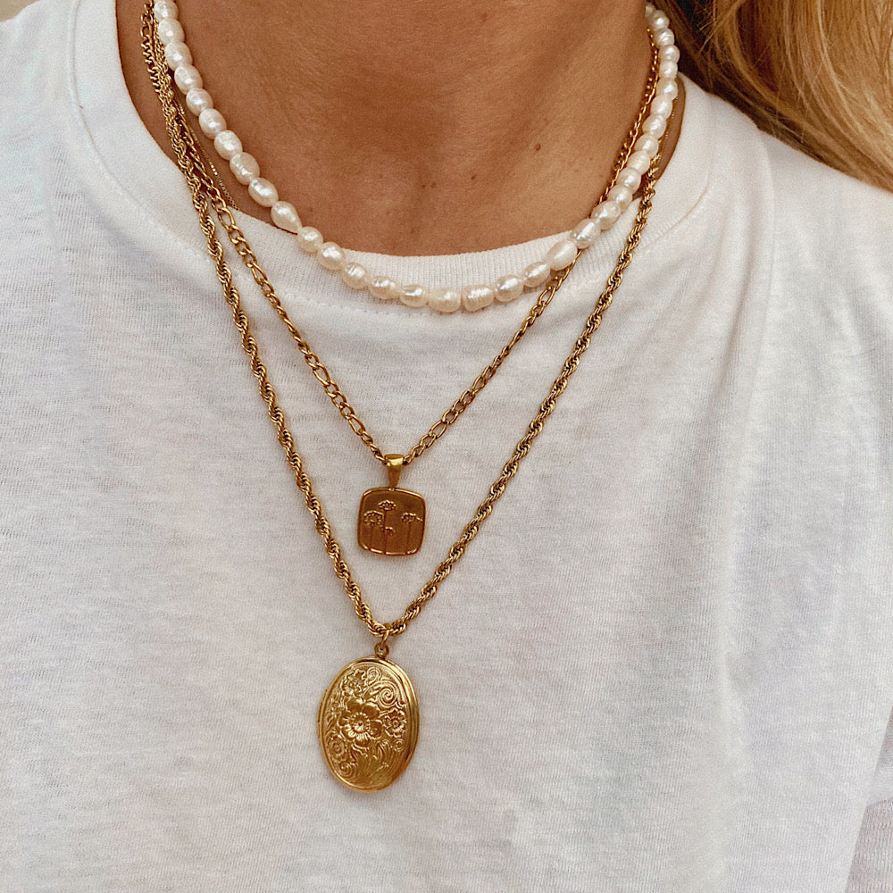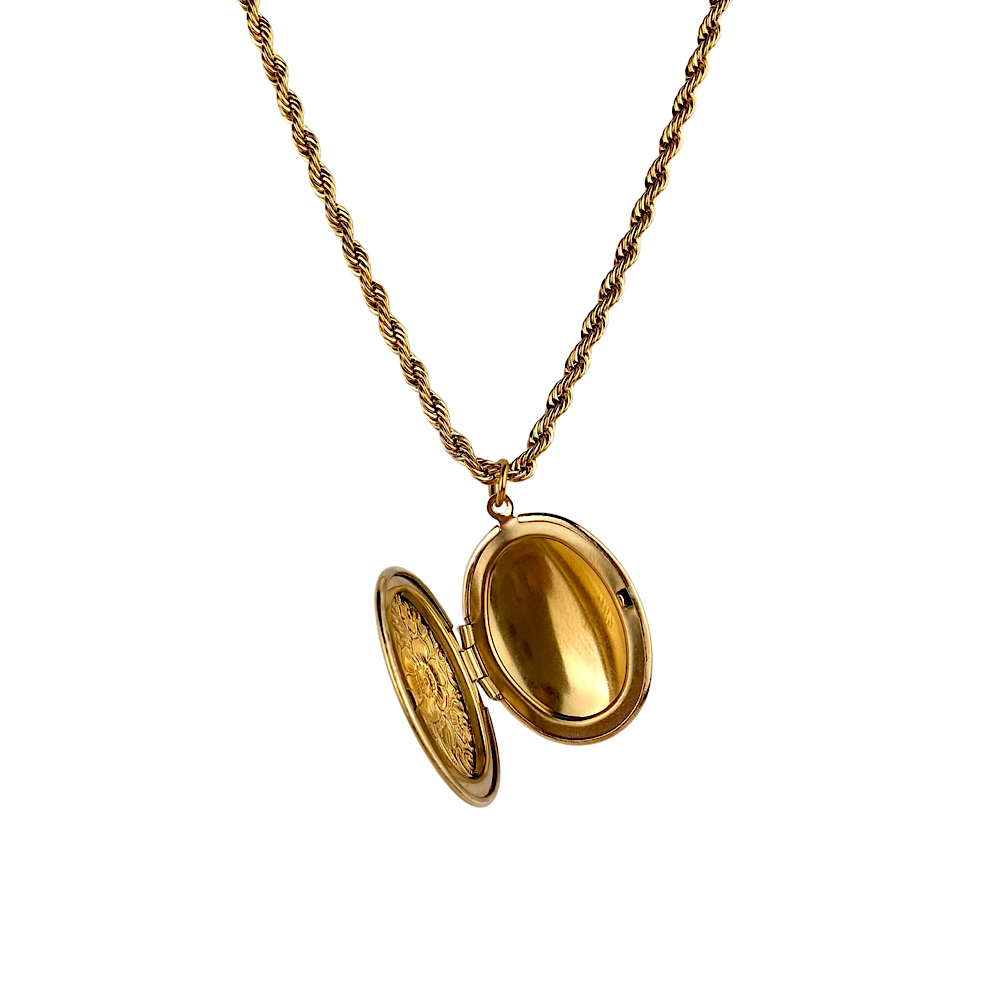 Catena torchon vintage. Ciondolo ovale con apertura, porta con te i tuoi ricordi.