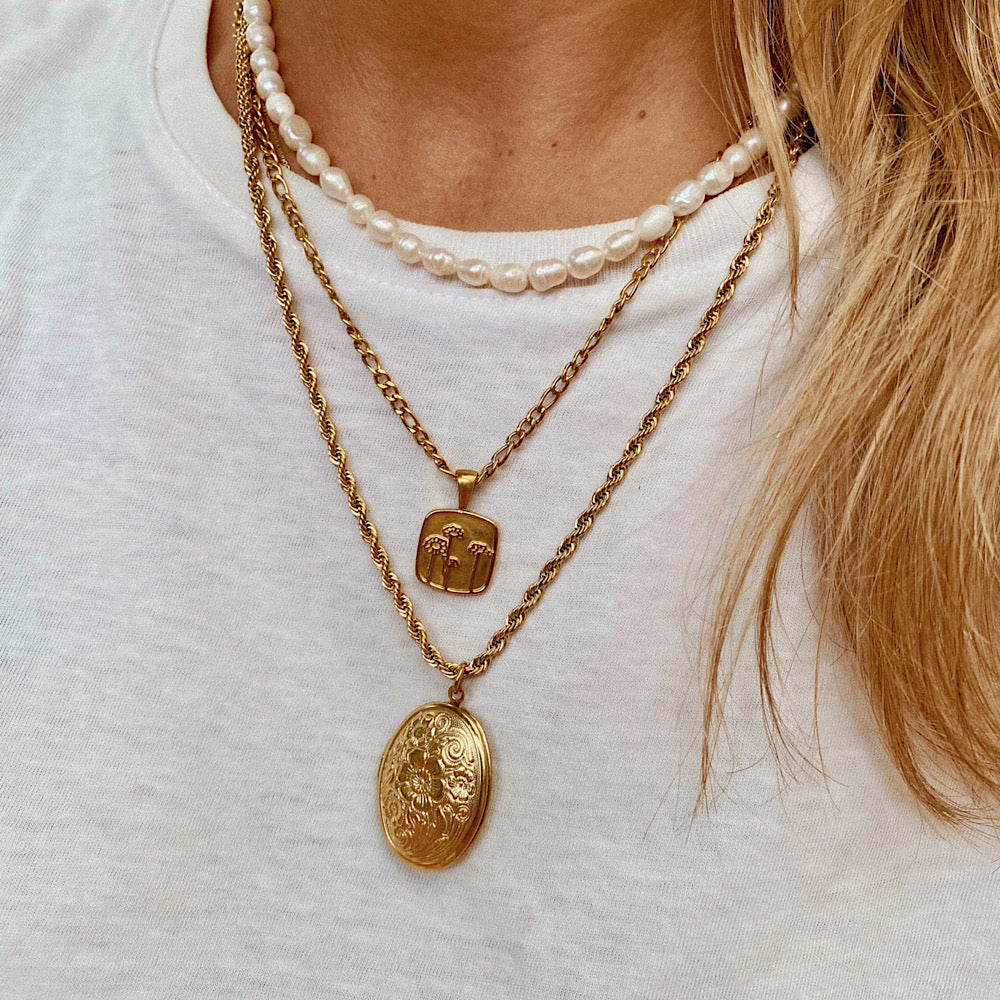 Lunghezza 40 cm + 5 cm di estensione. Moschettone in acciaio inossidabile finitura oro.