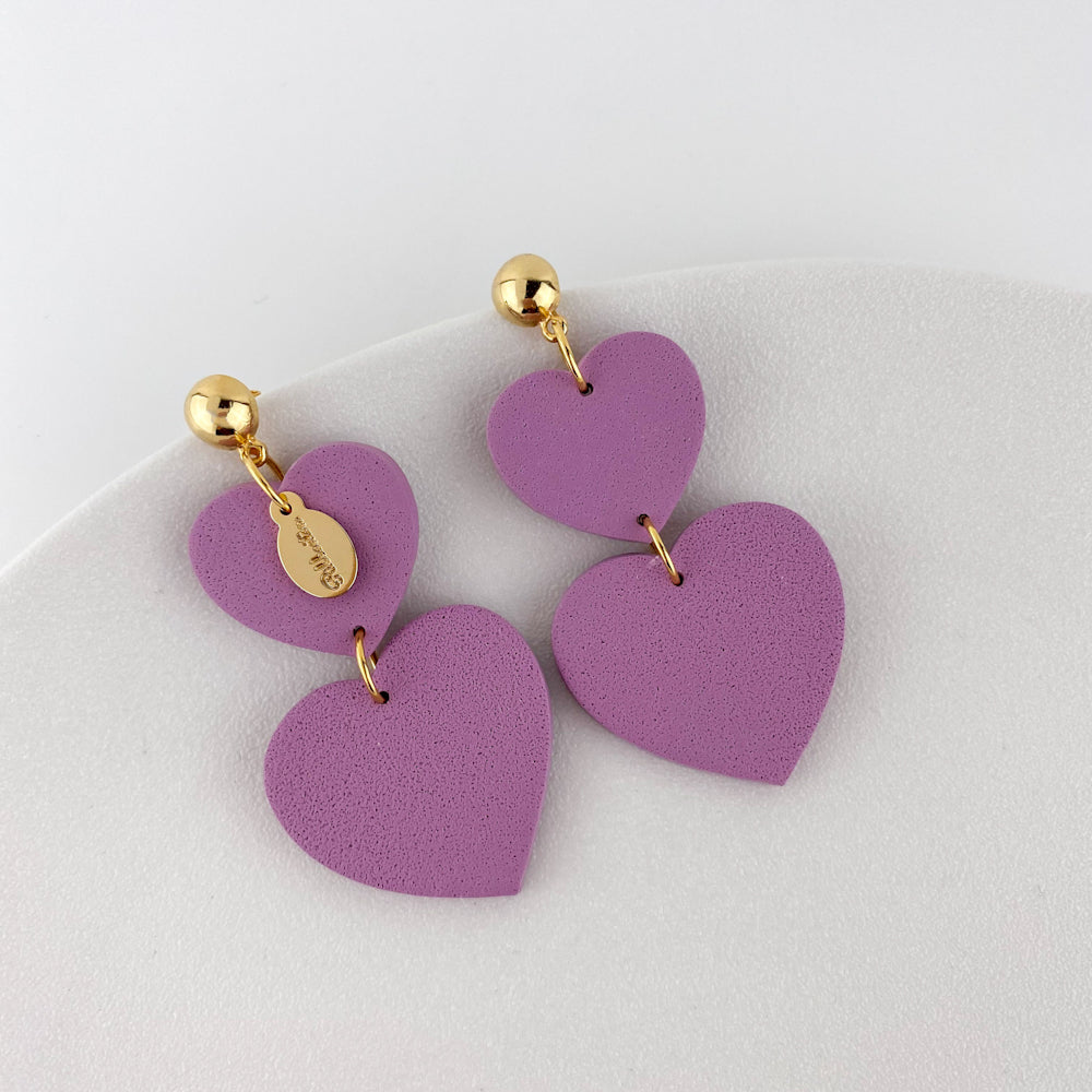 Doppio cuore malva. Perno a sfera in ottone finitura oro.