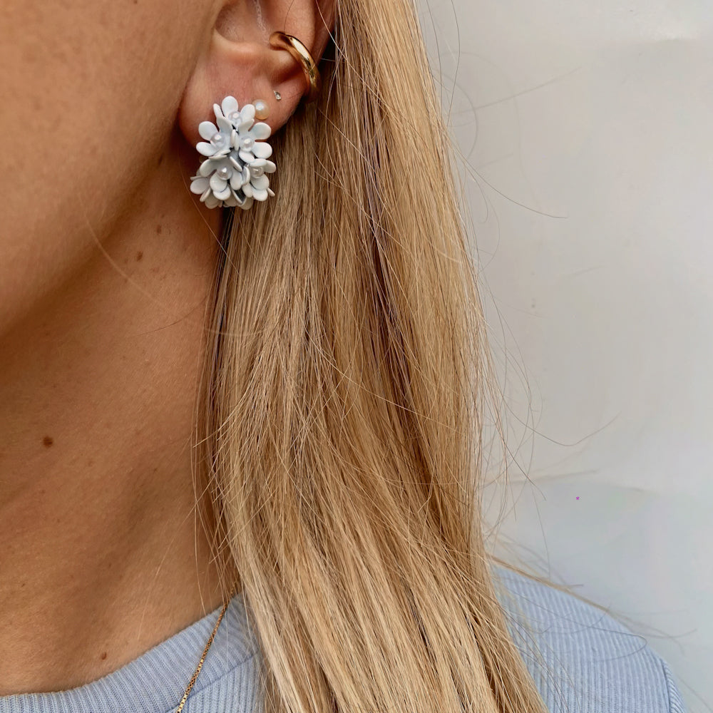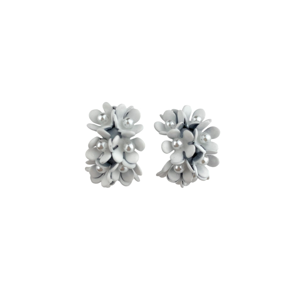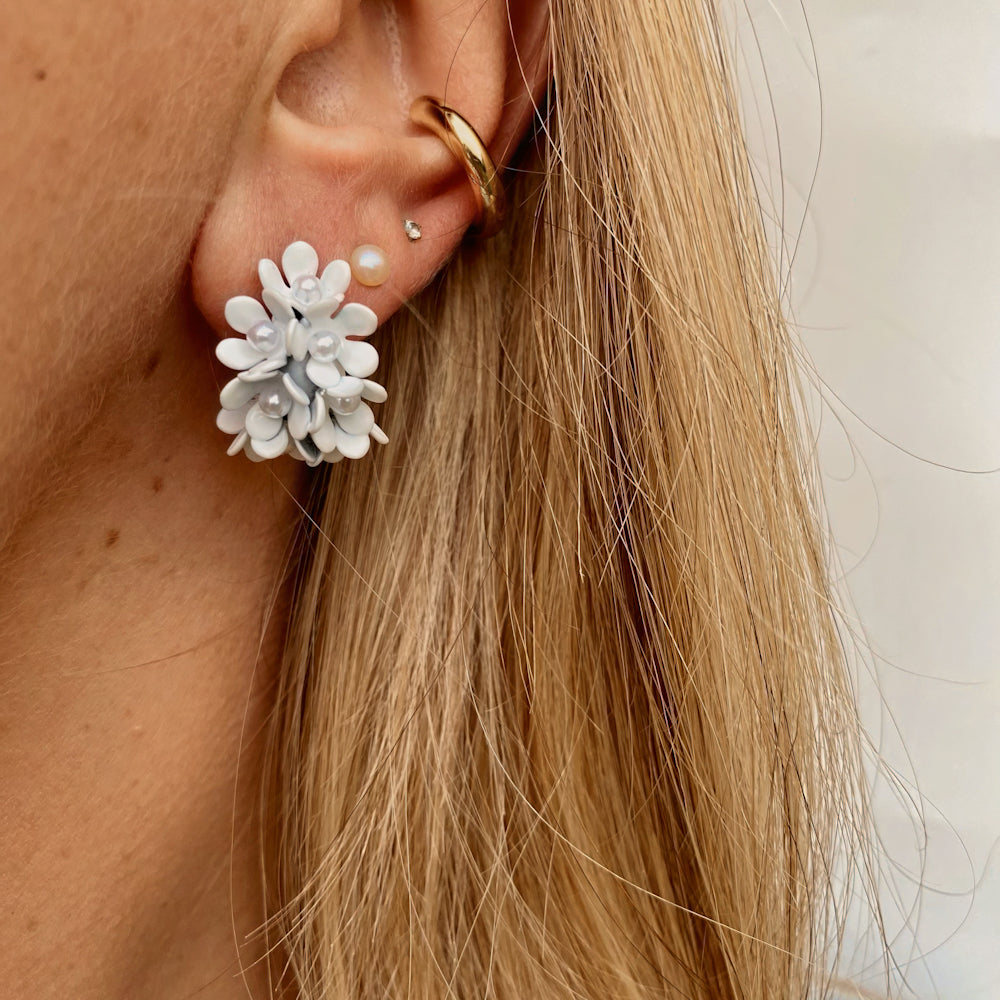 Orecchini semicerchio con microfiori bianco.