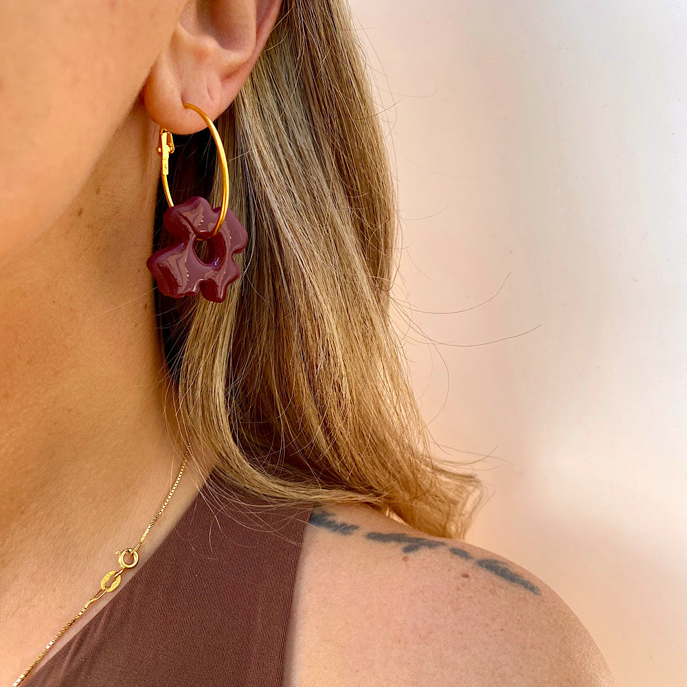 Coppia di orecchini in argilla effetto vinile, fiori cioccolato.