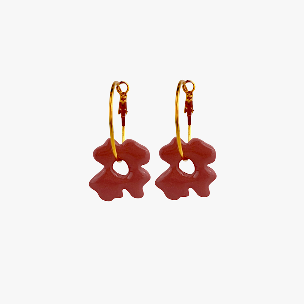 Coppia di orecchini in argilla effetto vinile, fiori rosa lentiggini.
