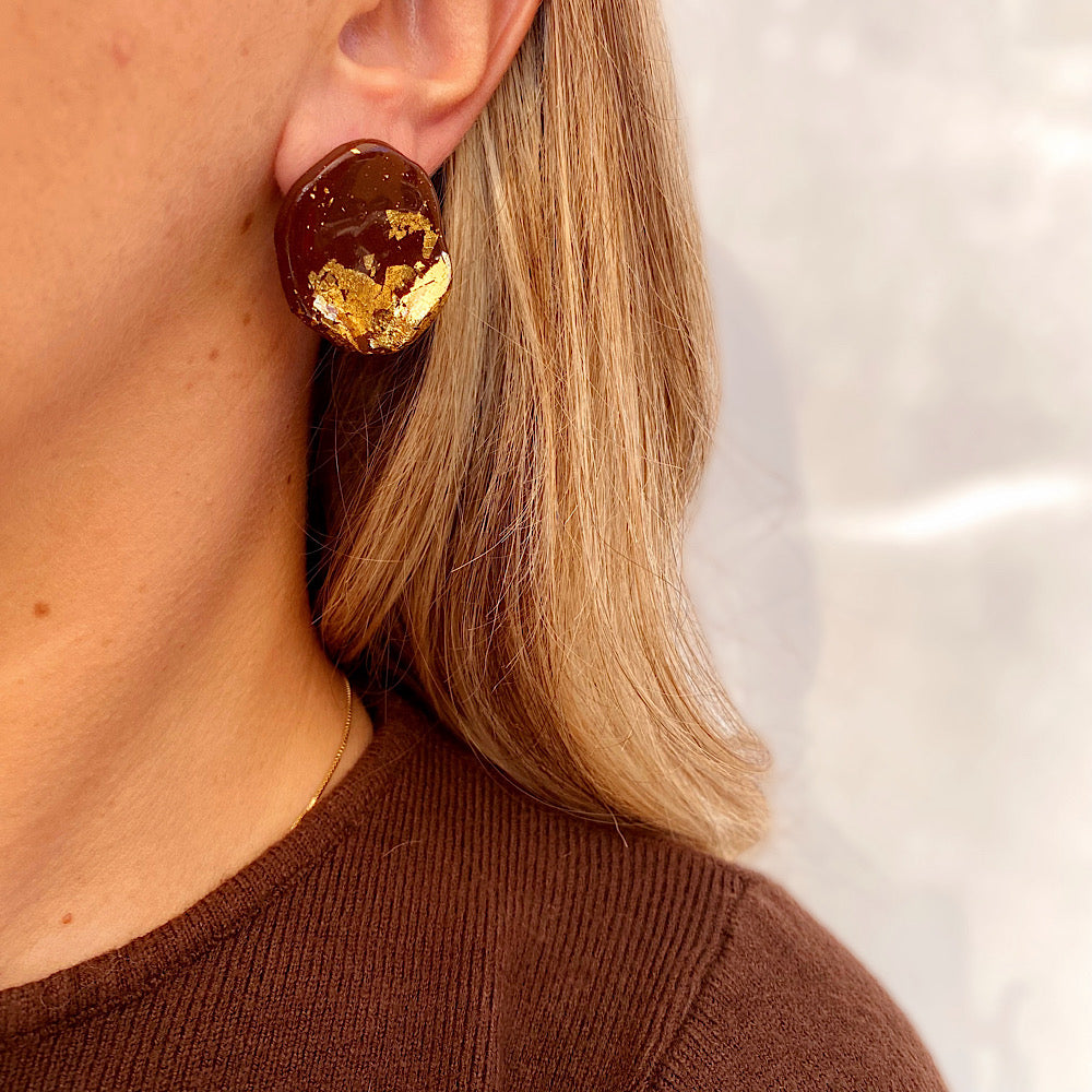 Coppia di orecchini in argilla effetto vinile, fiocchi oro.