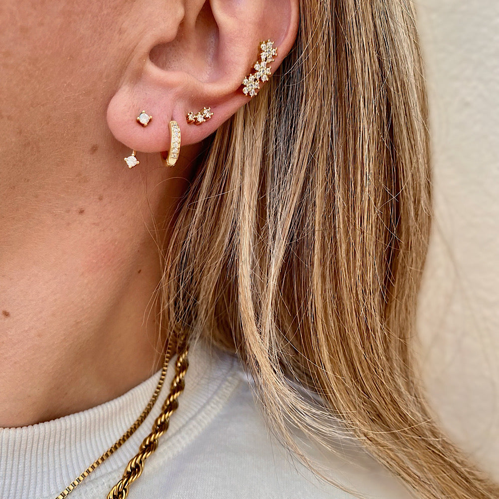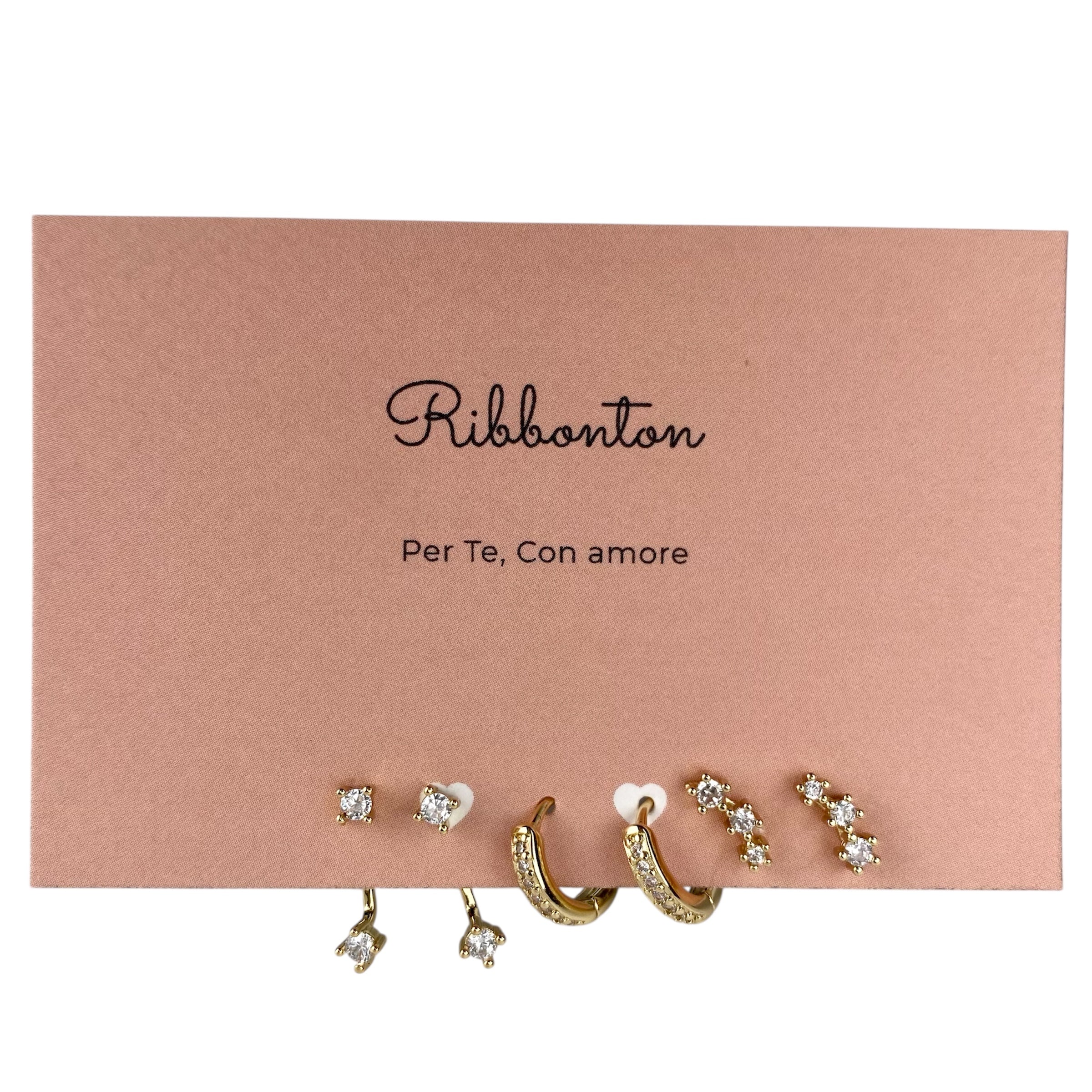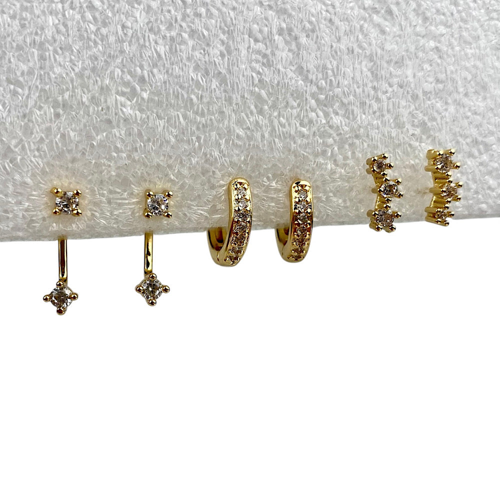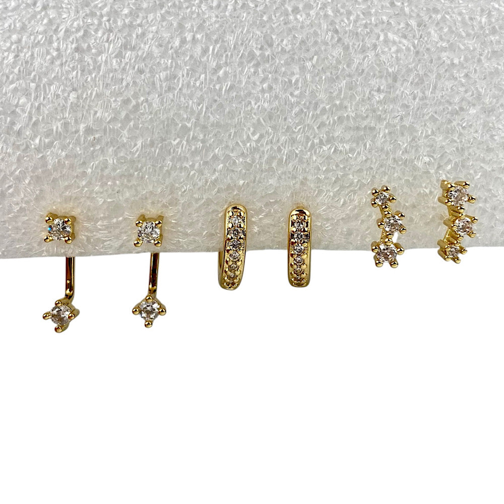 Set di 3 paia di orecchini zirconia. Acciaio inossidabile finitura oro.