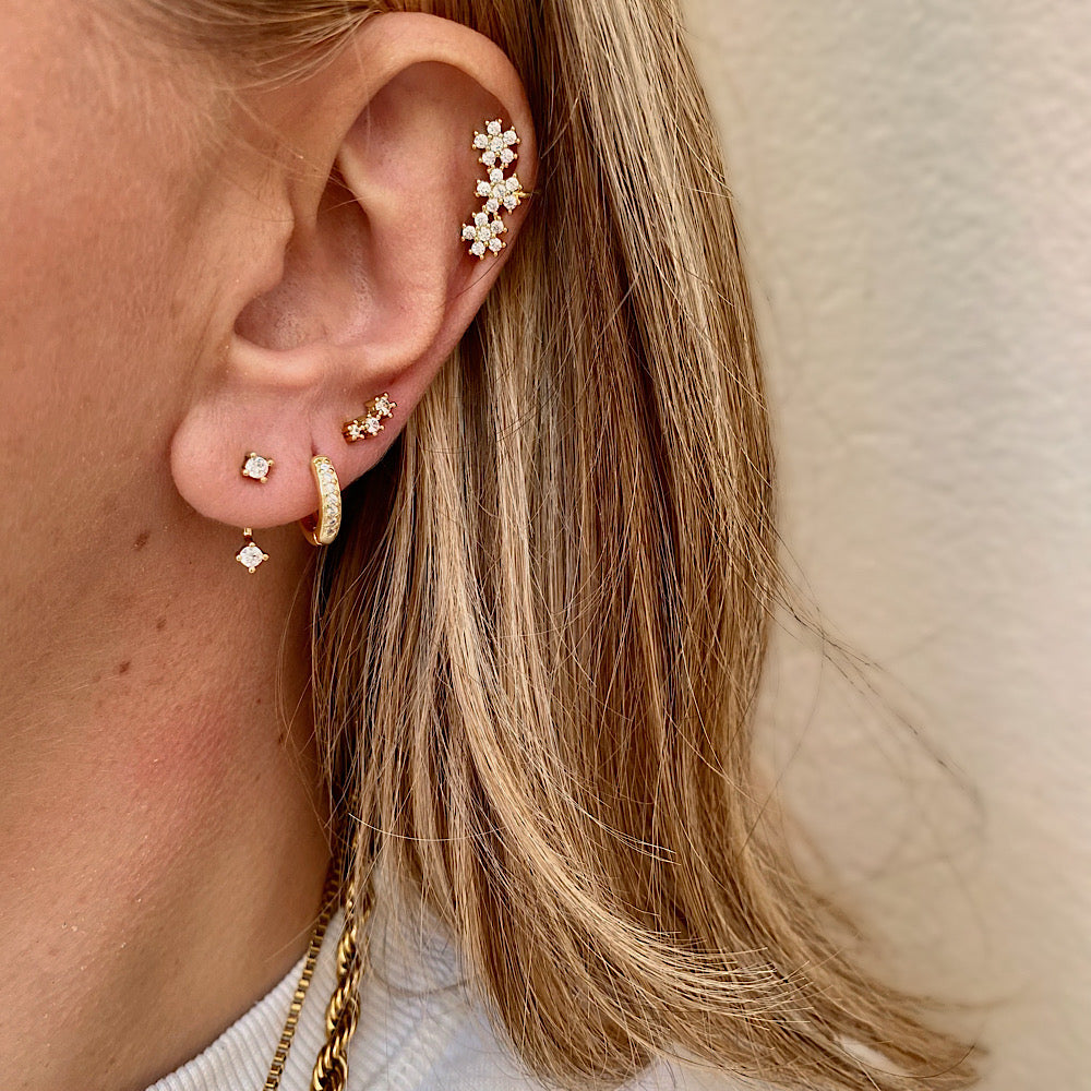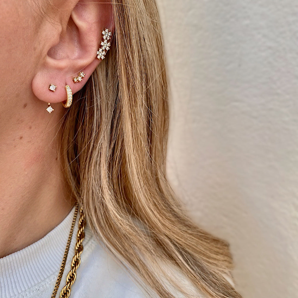 Il set comprende: 2 orecchini cubetti, 2 cerchietti mini strass, 2 bottoni strass costellazione.